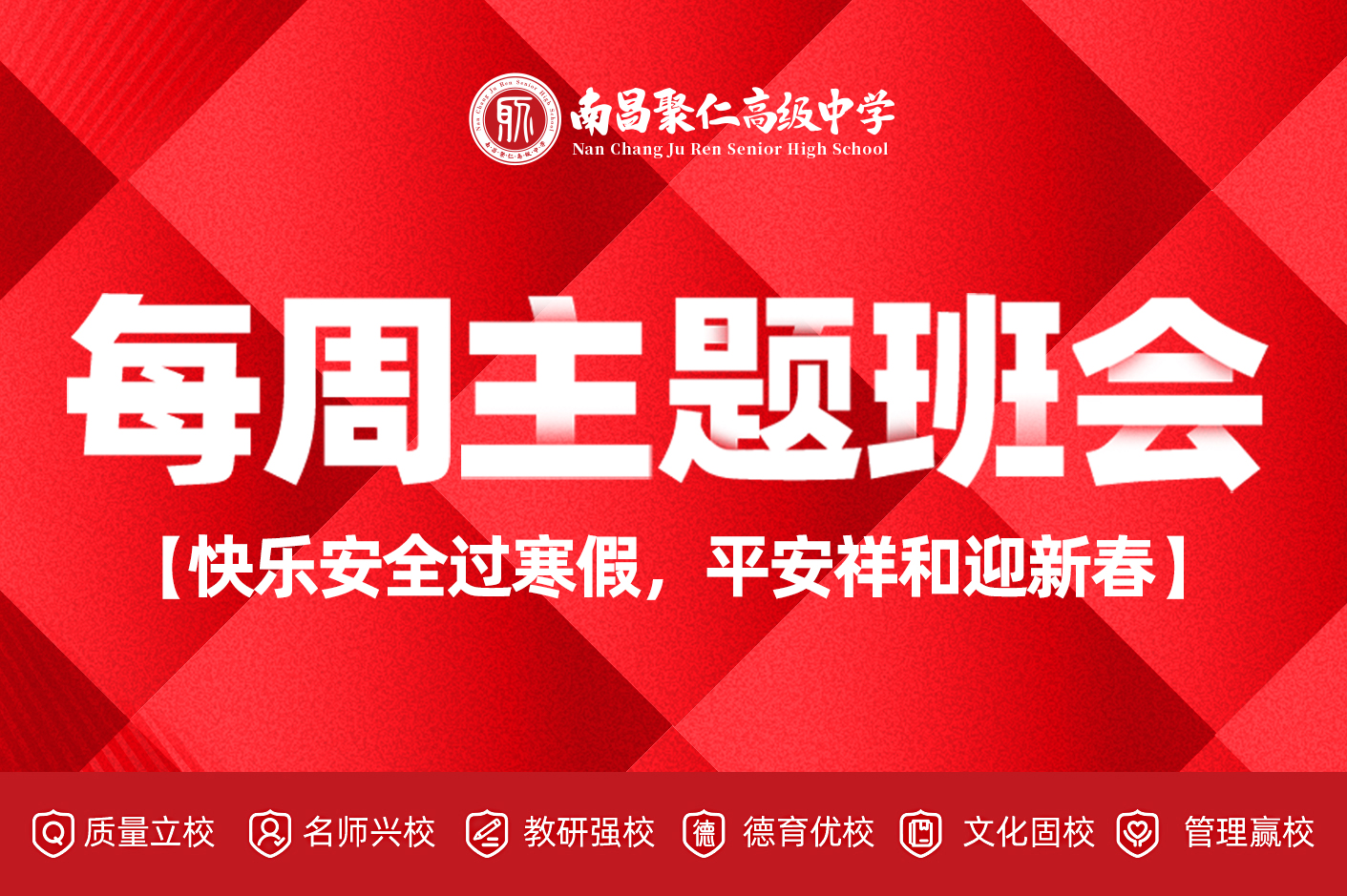 快乐安全过寒假,平安祥和迎新春——聚仁高中2025-2026学年第一学期第二十三周主题班会 寒假如期而至,春节的脚步也越来越近。为了让同学们度过一个安全、健康、充实、愉快的假期,我校于2月2日开展了第二十三周主题班会,围绕“快乐安全过寒假”这一主题,为同学们上了一堂生动而实用的安全教育课。本