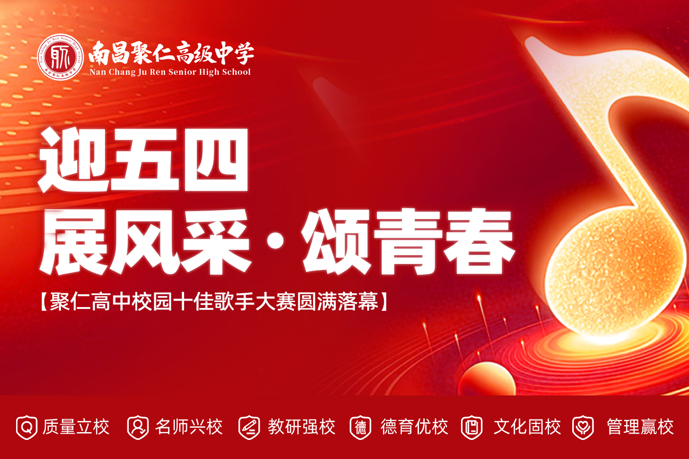 迎五四 · 展风采 · 颂青春——聚仁高中校园十佳歌手大赛圆满落幕 为迎接“五四”青年节,丰富校园文化生活,展现我校青年学子积极向上、朝气蓬勃的精神风貌,我校团委学生会主办的 “迎五四·展风采·颂青春”校园十佳歌手比赛已于近日圆满落下帷幕。本次比赛自启动以来,得到了全