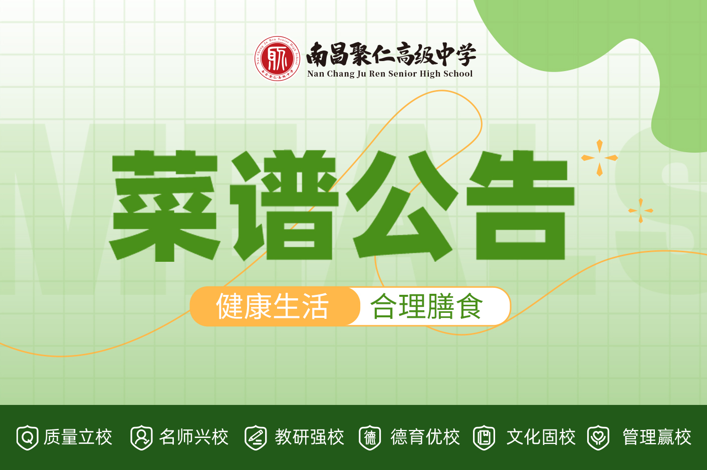 【菜谱公告】健康生活,从合理膳食开始 叮咚!今天的食堂菜单已送达——学习那么辛苦,吃饭可不能马虎。这是我校的【一周菜谱】,周一到周五,每天不重样,吃饱吃好,才有力气刷题冲关呀~请同学们按时就餐,珍惜粮食,践行光盘行动。如果你有特别想吃的菜
