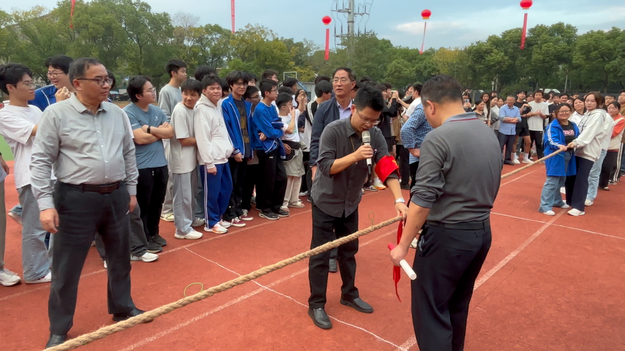 “哔——!”随着学生会裁判清脆的哨响,拔河赛场瞬间成为全场焦点!一根长绳,连接的是团结与友爱;一声呐喊,传递的是勇气与力量。平日里温文尔雅的老师们,此刻紧握麻绳,扎稳马步,齐声呐喊,将集体的力量凝聚于一处。口号声、欢呼声响彻云霄,这是力量与意志的终极比拼!