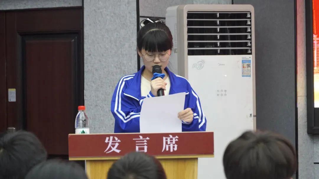 会议第二项,高一(2)班喻佳佳同学作为优秀学生代表发言。她号召全体同学树立远大的理想,明确学习目标,以更高的要求不断鞭策自己,以更加饱满的学习状态投入到学习中。最后,她真挚祝愿聚仁学子都能不断突破自我,成就越来越优秀的自己,笑傲赛场!