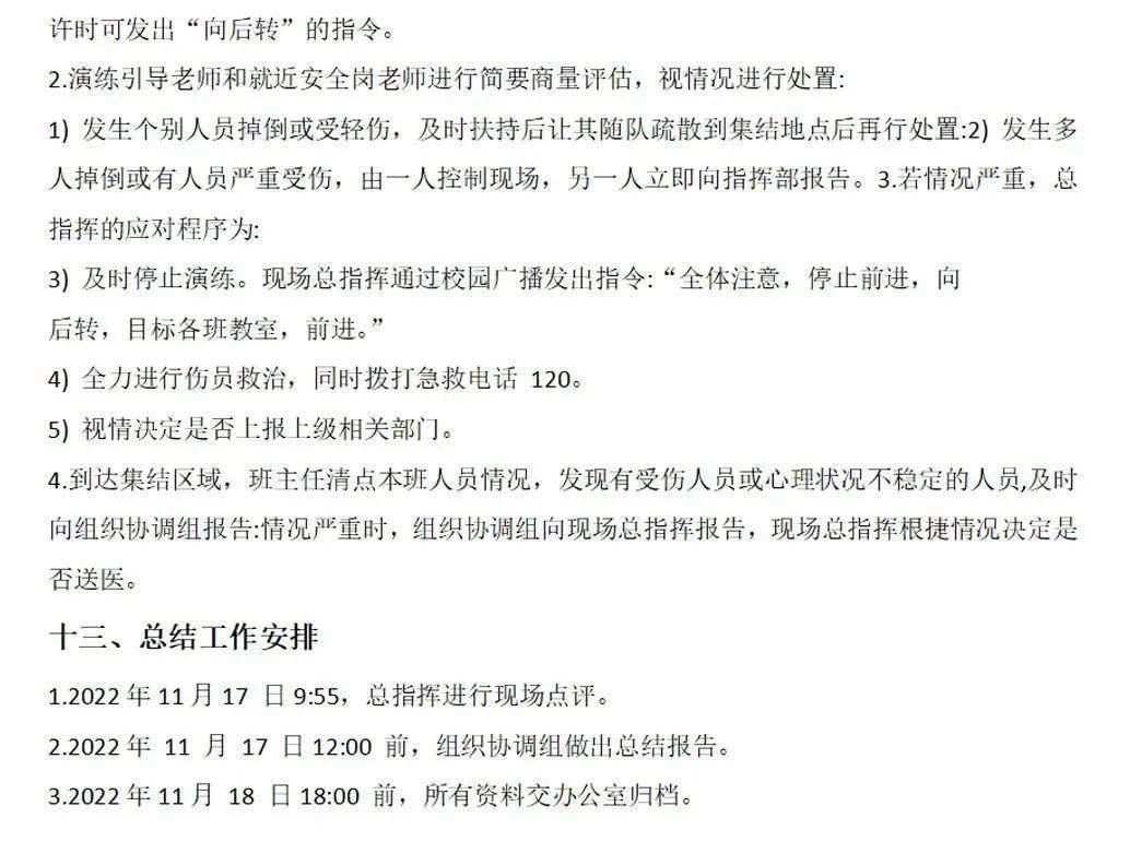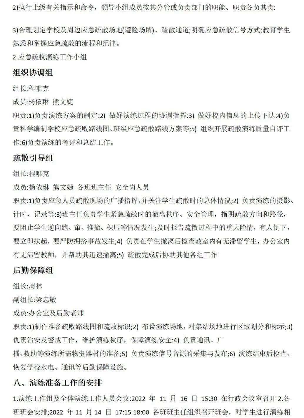 为了能有序、迅速的引导学生安全疏散,我校召开了应急演练会议,部署演练工作,制订了周密细致的演练预案。