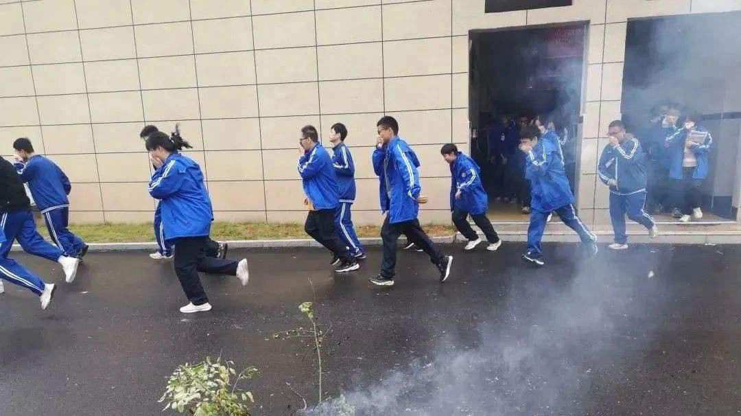 11月17日上午,随着浓烟升起,各班主任立即停下手中的工作,向班级奔去,组织学生撤离。在撤离的过程中,学生们用毛巾捂住口鼻,弓着腰,以免浓烟入口,向安全地区撤离。来到安全区域,老师清点人数,一切井然有序,在最短的时间内将全体学生撤离到安全地带。