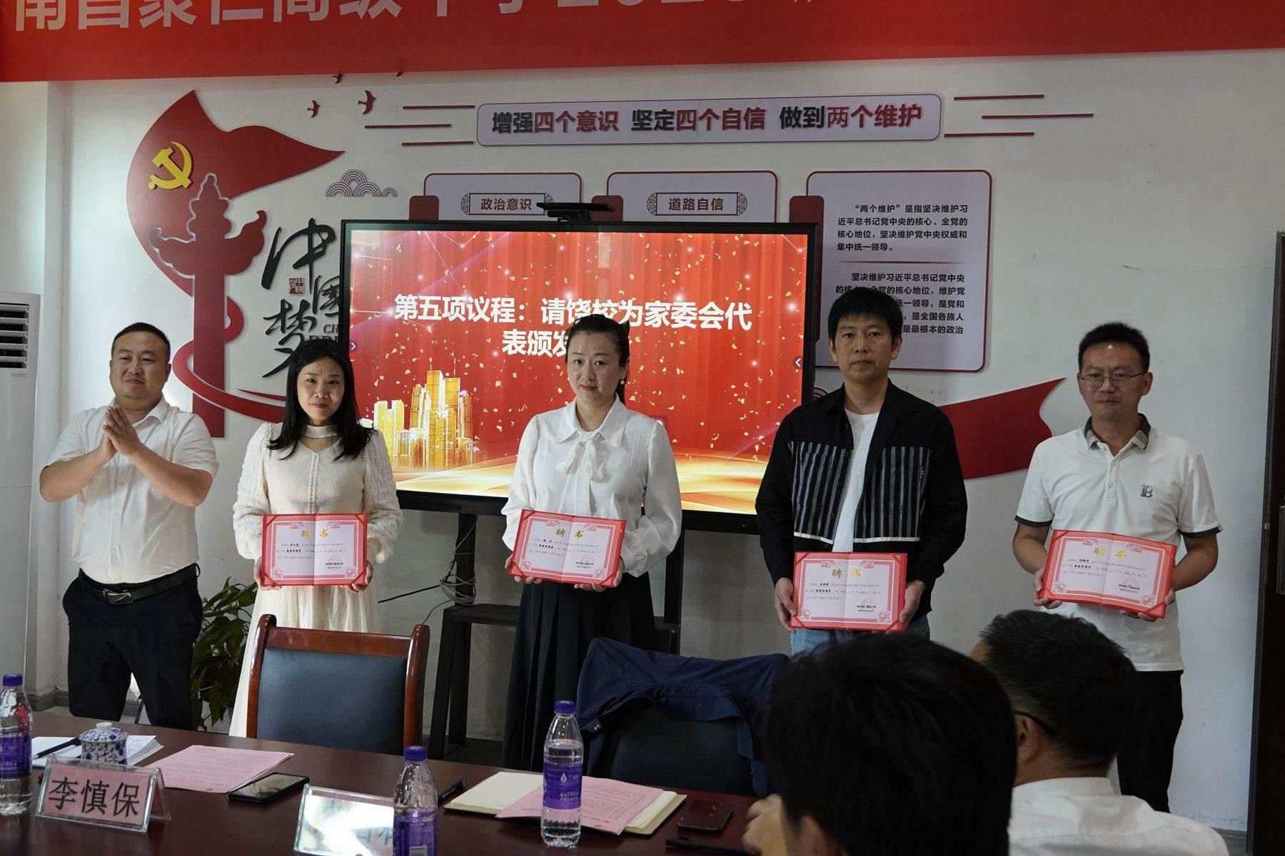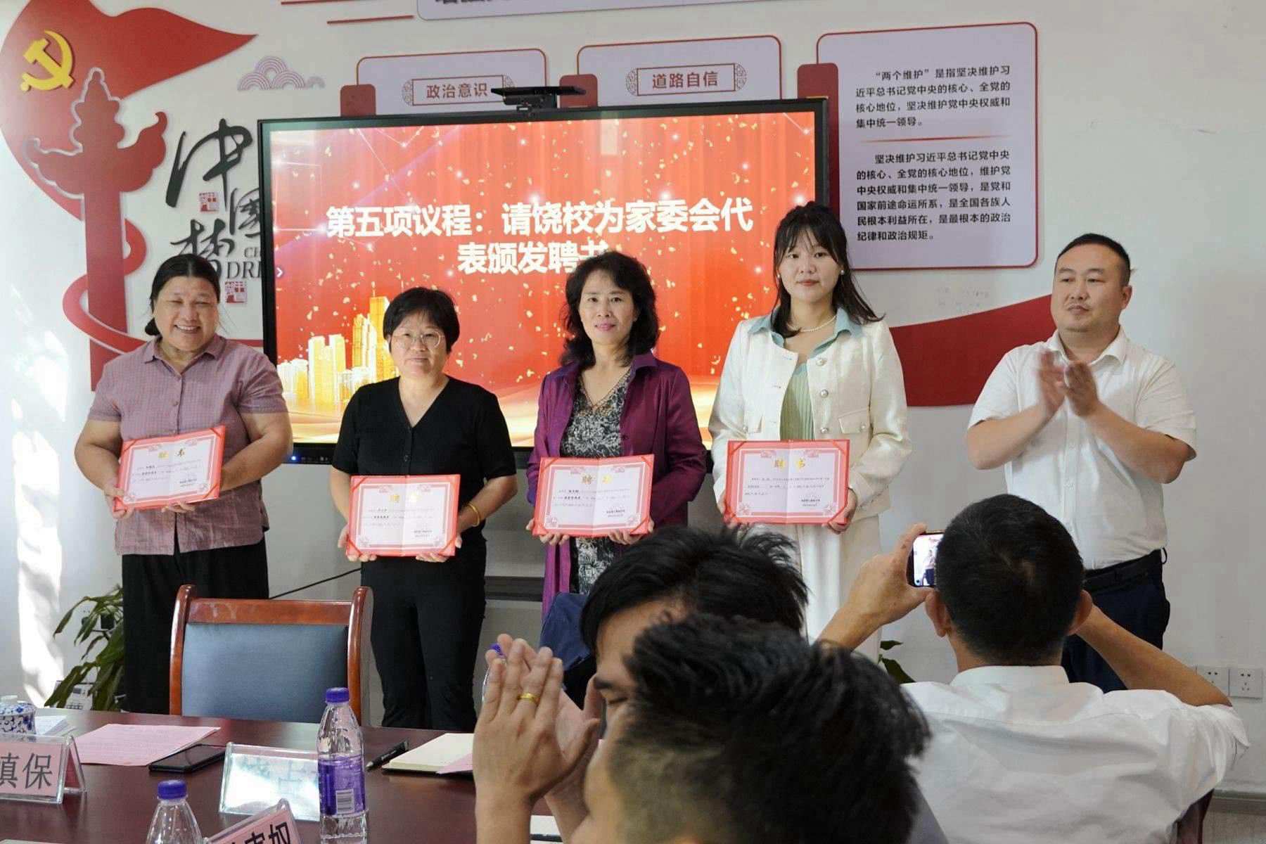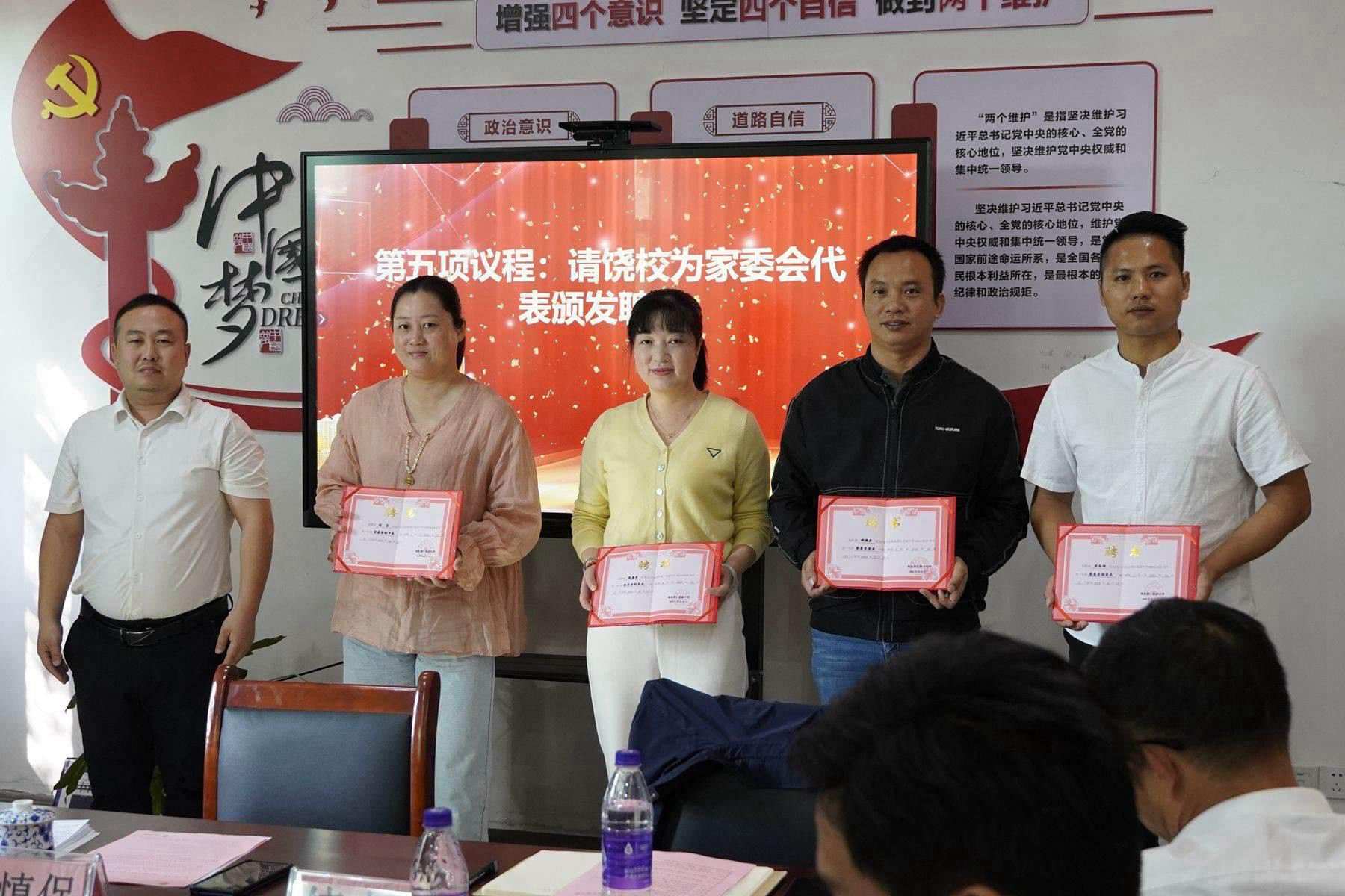 饶校长为家委会代表颁发聘书。一纸聘书,是一份无言的信任,是一份深情的嘱托,更是一份沉甸甸的责任。