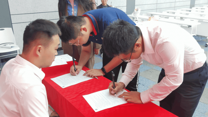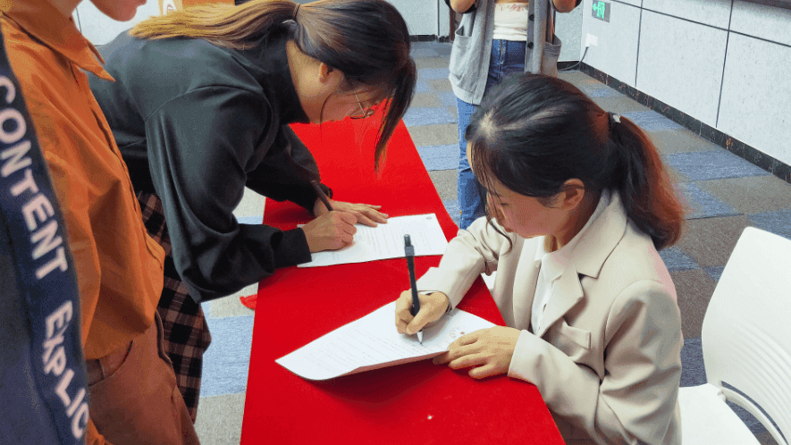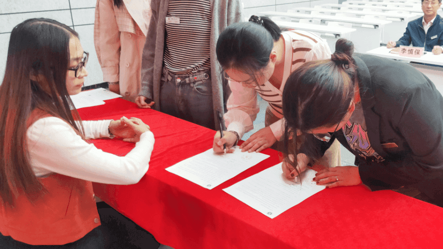 仪式上,兰蓉主任宣读了“青蓝工程”结对帮扶方案及师徒结对名单。各位教师与师傅签订结对协议并向师傅颁发证书。